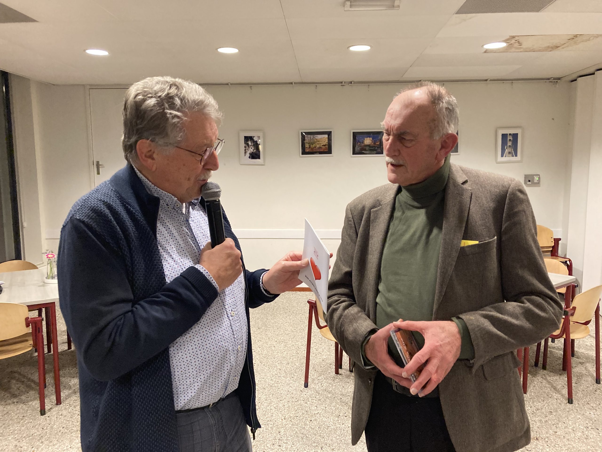 Tot slot huldigde Van Halderen een herintredend lid in: Koos Klijn. Die had al eerder een paar jaar bij het AMK gezongen, was toen vertrokken en vervolgens teruggekomen voor de kerstconcerten. Dat was hem zo goed bevallen dat hij besloot bij het AMK te blijven.
